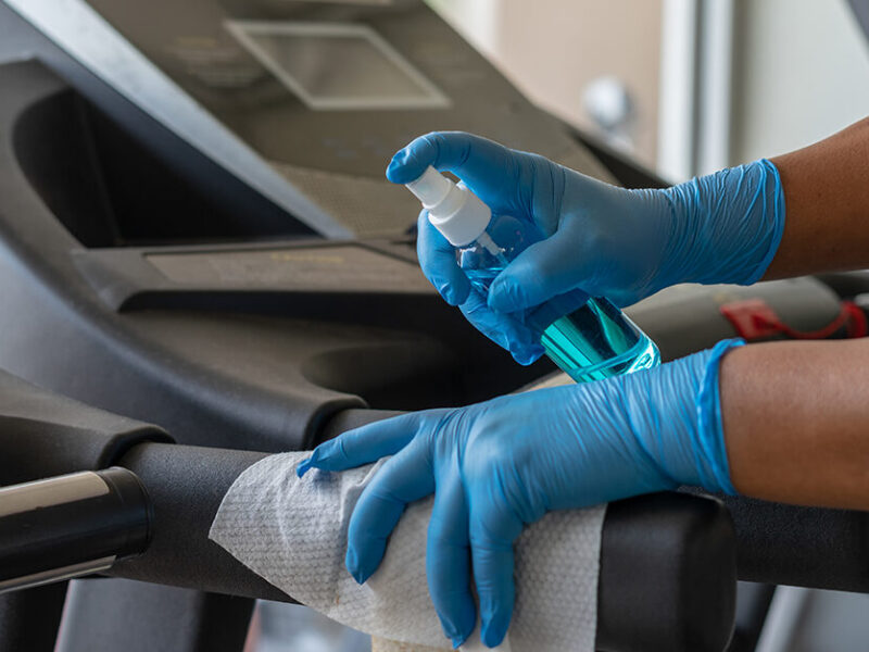 We thoroughly clean and disinfect exercise machines, weights, benches, and mats to prevent the spread of germs and bacteria.